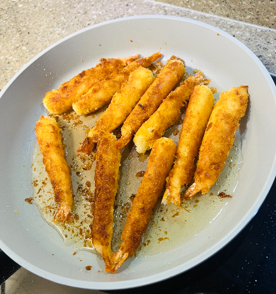 프라이팬 조리는 에어프라이어보다 튀김옷의 바삭함이 조금 더 살아나는 편이었고, 대신 기름 사용이 필요한 점은 참고하면 좋겠습니다.